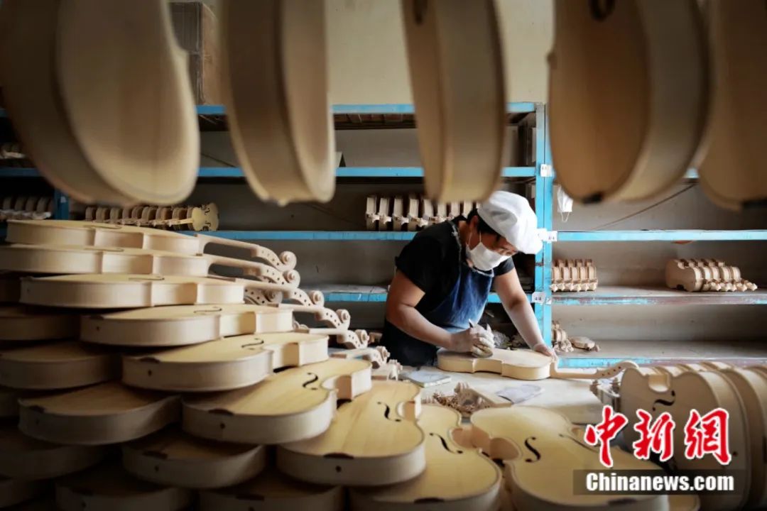 “我們的小提琴共有197道制作工序,從選料到雕刻,從修光到油漆,每一道都要進行嚴格的把控。小提琴的制作過程,就像是在雕刻工藝品一樣。每個環(huán)節(jié)相輔相成,缺一不可。”江蘇鳳靈樂器有限公司生產(chǎn)副總經(jīng)理張文舉說。