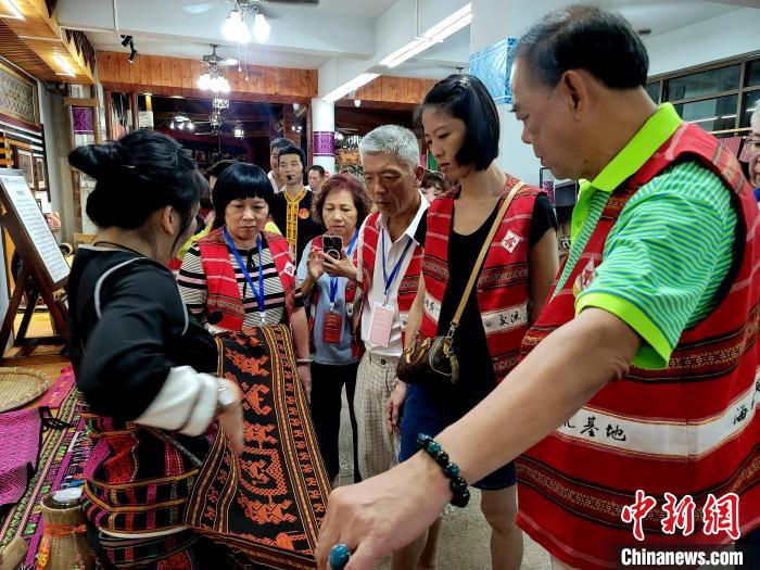 臺北市商業(yè)總會一行在海南檳榔谷景區(qū)觀看黎錦作品。 王曉斌 攝