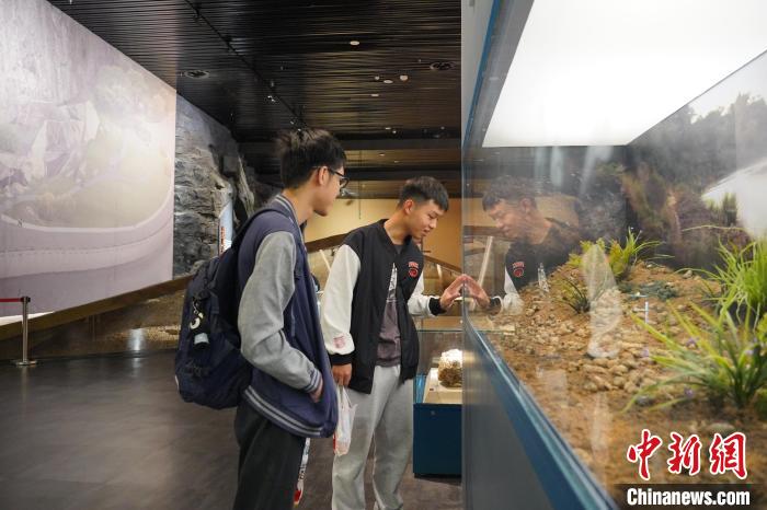 圖為今年5月,游客正在觀賞柳州白蓮洞洞穴科學(xué)博物館內(nèi)展出的螺螄殼化石。韋國(guó)政 攝