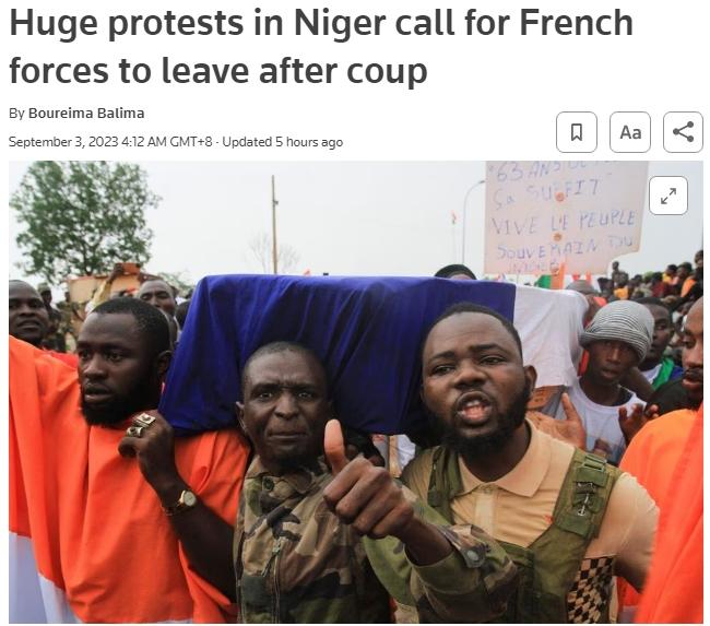 近來,尼日爾國內(nèi)的反法情緒日漸高漲。尼日爾軍政府8月31日宣布,暫停各國非政府組織、國際組織和聯(lián)合國機構在“軍事行動區(qū)”內(nèi)活動,并下令警察驅(qū)逐法國駐尼大使。