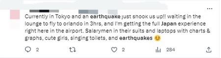 有網(wǎng)友在社交媒體上表示,“昨天還在想(日本)很久沒(méi)發(fā)生地震了,幾分鐘前卻連續(xù)發(fā)生了兩次地震。”
