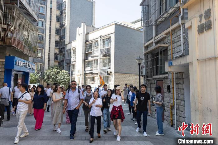 9月6日至10日,中亞五國青年代表團(tuán)一行20人赴渝參訪。圖為代表團(tuán)參訪重慶兩江新區(qū)邢家橋社區(qū)。 陳建 攝