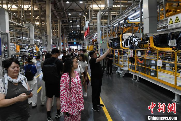 參訪期間,代表團(tuán)一行參觀長安汽車兩江工廠?!≈行律缬浾?周毅 攝