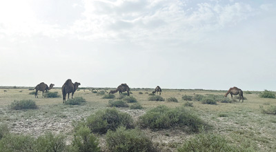 駱駝養(yǎng)殖戶努爾馬哈木別特的牧場里一片生機勃勃。