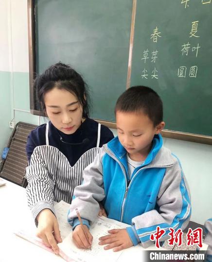 魯珊為學(xué)生輔導(dǎo)功課。(資料圖)武萬(wàn)宏 攝