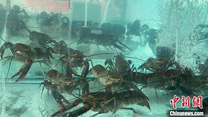 9月7日,記者來到位于新疆喀什麥蓋提縣的澳洲淡水龍蝦養(yǎng)殖基地,圖為養(yǎng)殖的澳洲淡水龍蝦。中新社記者 朱賀 攝