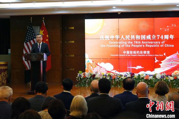 中新社紐約9月14日電 (記者 王帆)中國駐紐約總領館當地時間13日晚在紐約舉行慶祝中華人民共和國成立74周年招待會,領區(qū)政商學媒等各界代表近400人出席。