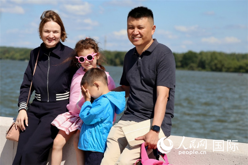 邢亮與妻子娜斯佳還有孩子們?cè)诤吷⒉?。人民網(wǎng)記者 朱虹攝
