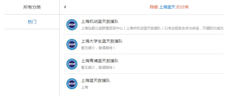 “藍(lán)天救援·中國”官網(wǎng)品牌授權(quán)隊(duì)伍查詢中,上海藍(lán)天旗下分類有4支隊(duì)伍
