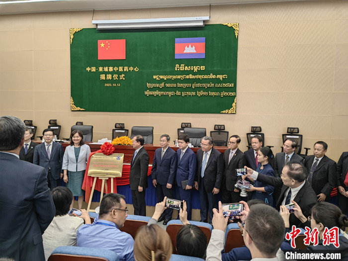 當(dāng)?shù)貢r(shí)間10月12日,“中國(guó)—柬埔寨中醫(yī)藥中心”揭牌儀式在柬埔寨金邊考斯瑪中柬友誼醫(yī)院舉行。 中新社記者 楊強(qiáng) 攝