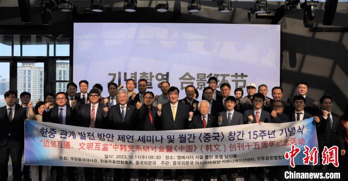 中新網(wǎng)首爾10月12日電 (記者 劉旭)11日,“近鄰互通、文明互鑒”中韓關(guān)系研討會暨《中國》(韓文)創(chuàng)刊十五周年紀(jì)念活動在韓國舉行。中國駐韓國大使邢海明出席活動,中國外文局副局長兼總編輯高岸明為活動發(fā)來視頻致辭,韓國前駐華大使權(quán)丙鉉、韓中友好聯(lián)合總會會長禹守根等中韓嘉賓、主辦單位代表和韓國各界友好人士等50余人出席。