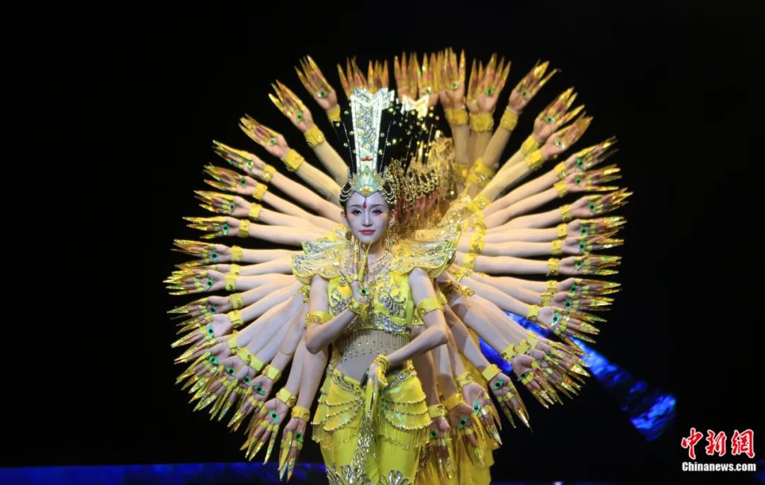 敦煌大劇院,演員在大型情景音畫(huà)劇《千手千眼》中表演。張曉亮 攝
