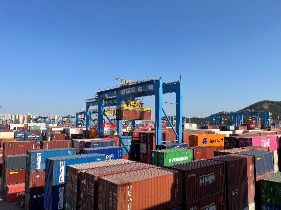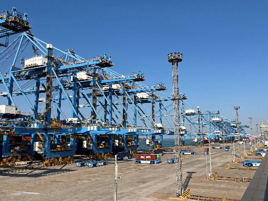 山東港口青島港全自動化集裝箱碼頭是亞洲首個真正意義上的全自動化集裝箱碼頭,其自主研發(fā)的全自動化集裝箱碼頭智能管控系統(tǒng)A-TOS,實現(xiàn)關鍵核心技術的完全自主可控?!澳壳按a頭平均裝卸效率達到36.2自然箱/小時,最高效率達到60.18自然箱/小時”,山東港口青島新前灣集裝箱碼頭有限責任公司工會副主席王崇山向記者介紹道。自碼頭實現(xiàn)全自動化轉型后,作業(yè)效率較傳統(tǒng)碼頭提升30%,節(jié)省人力80%,“我們成為了全球第一個完全超過傳統(tǒng)碼頭的自動化碼頭”,王崇山說。