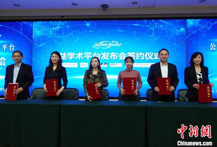 11月1日,“PubScholar公益學(xué)術(shù)平臺”在中國科學(xué)院文獻(xiàn)情報中心正式發(fā)布,并在發(fā)布會上舉行相關(guān)合作簽約儀式。中新網(wǎng)記者 孫自法 攝