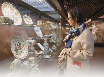陶瓷收藏館展廳內,一架以“葡萄牙藍”瓷板畫藝術形式制作的小提琴最為精致奪目。這件藏品由捷克藝術家瓦茨拉夫·奇夫卡制作,小提琴外表突出還原了瓷板畫的光澤和色彩,同時兼具中國青花瓷的藝術神韻。彼時歐洲人尚在探索制瓷工藝,其創(chuàng)作方法、使用材料和圖形模式與中國雖有所不同,但一件件精美的瓷器制品依然能令我們看出當時歐洲工匠的精致技藝,以及中國傳統藝術風格在當地的嬗變發(fā)展,這些瓷器堪稱中葡藝術風格相互融合的產物,也是海上絲綢之路互聯互通的結晶。