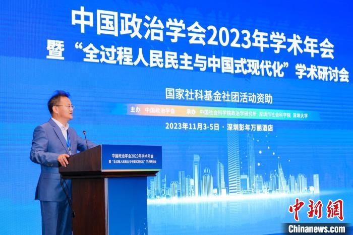 中新網(wǎng)深圳11月5日電 由中國(guó)政治學(xué)會(huì)主辦的2023年學(xué)術(shù)年會(huì)暨“全過(guò)程人民民主與中國(guó)式現(xiàn)代化”學(xué)術(shù)研討會(huì)2023年11月4日—5日在深圳舉行,來(lái)自全國(guó)高校系統(tǒng)、黨校系統(tǒng)和科研院所近300位專家學(xué)者參加會(huì)議。本次會(huì)議由中國(guó)社會(huì)科學(xué)院政治學(xué)研究所、深圳市社會(huì)科學(xué)院和深圳大學(xué)共同承辦。這次年會(huì)同時(shí)得到國(guó)家社科基金社團(tuán)活動(dòng)資助。