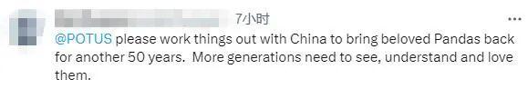 也有網(wǎng)友寫道,希望繼續(xù)與中國合作,在未來50年再次見到可愛的大熊貓,“更多的后代們需要見見它們、了解它們,并愛上它們。”