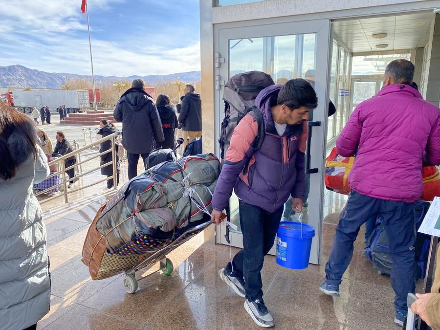 中國網(wǎng)11月8日訊(記者 王冉) 11月6日上午9點(diǎn),來自巴基斯坦的穆罕默德·伊斯梅爾和同伴們在紅其拉普口岸聯(lián)檢大廳外等待通關(guān),這是他今年第16次從該口岸往返中巴。從這里出發(fā),穆罕默德·伊斯梅爾只需花費(fèi)225元,即可乘坐國際道路旅客(旅游)班車抵達(dá)巴基斯坦蘇斯特口岸,全程約5個(gè)小時(shí)。