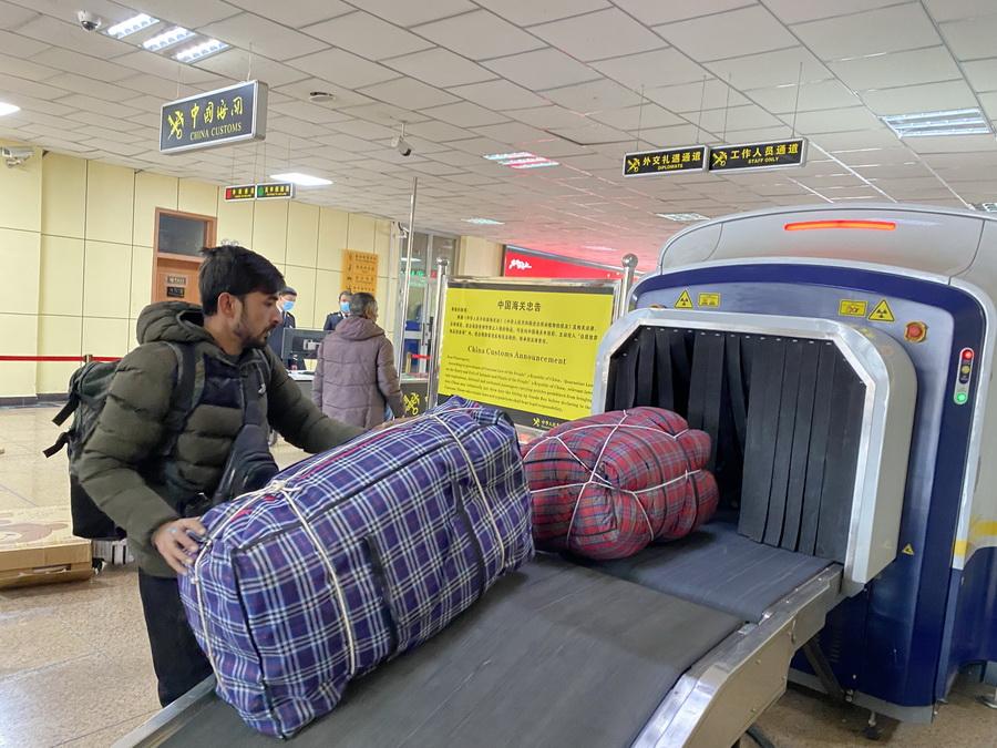 11月6日,一位巴基斯坦商人正在通過海關(guān)。(中國網(wǎng)記者 王冉 攝)