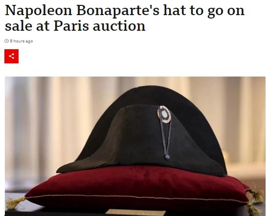 拿破侖標(biāo)志性雙角帽將被拍賣 估價(jià)高達(dá)80萬(wàn)歐元