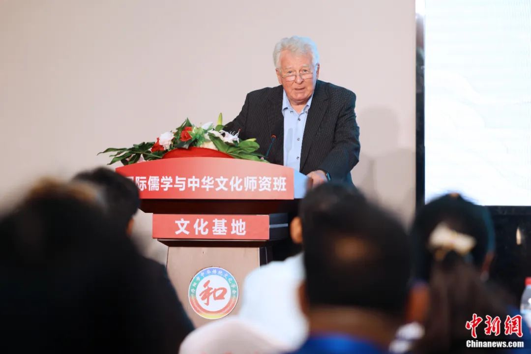 2023年8月14日,中西比較哲學(xué)家安樂哲在活動(dòng)現(xiàn)場(chǎng)致辭。李國(guó)慶 攝