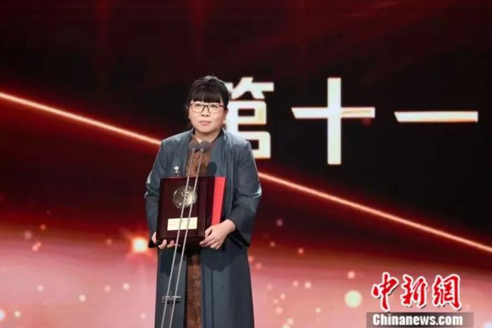 2023年11月19日晚,喬葉獲頒第十一屆茅盾文學獎。浙江衛(wèi)視供圖