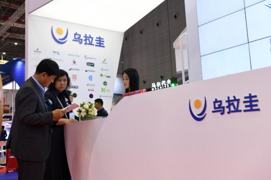 2019年11月6日,參觀者在第二屆進(jìn)博會烏拉圭國家館展臺咨詢。