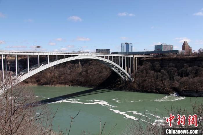 位于尼拉加拉瀑布旁、連接加拿大安大略省和美國(guó)紐約州的彩虹橋美國(guó)一側(cè),11月22日臨近中午時(shí)發(fā)生汽車爆炸事件,導(dǎo)致這座作為加美兩國(guó)邊境口岸的大橋緊急雙向關(guān)閉。資料圖為2020年3月21日在加拿大一側(cè)拍攝的彩虹橋。 中新社記者 余瑞冬 攝