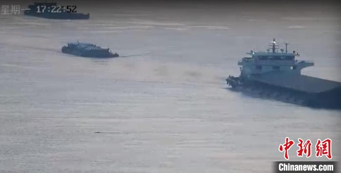 這頭野豬泳姿非常靈活,還主動(dòng)避讓了長(zhǎng)江中行駛中的各類(lèi)船舶。江蘇海事局 供圖