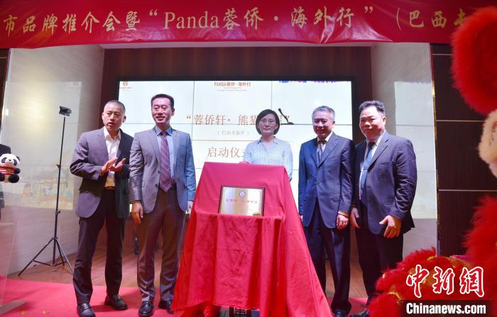 戴浚偕田玉震,葉周永,巴西中國大西南同鄉(xiāng)總會(huì)會(huì)長李新城,巴西華文教育慈善基金會(huì)、圣保羅慈佑學(xué)校代表羅淑君共同為“蓉僑軒·熊貓書屋”揭幕。