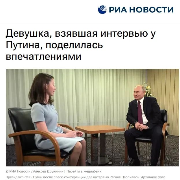 普京接受失明女孩采訪(fǎng)。圖片來(lái)源:俄新社報(bào)道截圖