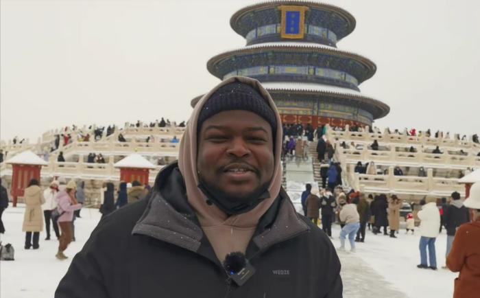 當日正值大雪,銀裝素裹的天壇宛如一幅畫卷,古老的祈年殿在白雪的映襯下更顯莊重肅穆。留學生們沉浸在大雪紛飛的美景中,紛紛拿出手機互相打卡拍照,記錄下這美好瞬間。哈薩克斯坦籍留學生阿迪力(ARYSTAN ADIL)向記者介紹,這是他第一次來到天壇,“天壇是古代皇帝祭天祈雨的地方,我對中國的歷史很感興趣。”阿迪力說。