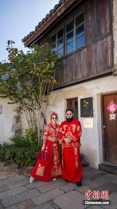 就在不久前,美莎和沙吶沙拍了中式婚紗照,身著紅色秀禾服的美莎選擇與先生在白墻灰瓦的中式園林建筑中留下二人愛(ài)情的見(jiàn)證。而兩人的婚禮也頗有戲劇性,雙方父母在土庫(kù)曼斯坦家鄉(xiāng)為兩人辦酒,沒(méi)能回國(guó)的他們則通過(guò)視頻遠(yuǎn)程參加了自己的婚禮,接受家人們的祝福。美莎笑稱,她的微信婚禮很特別,很能代表中國(guó)速度。