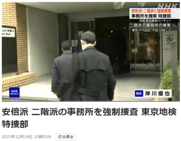 中新網(wǎng)12月19日電 據(jù)日本放送協(xié)會(NHK)報道,19日,日本東京地檢特搜部以違反政治資金相關(guān)法規(guī)為由,對自民黨安倍派(清和政策研究會)和二階派(志帥會)的辦公場所進行強制搜查。