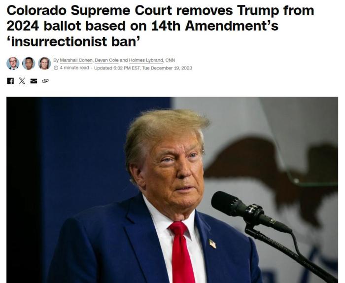 分析稱,州最高法院的裁決只適用于科羅拉多州,但這一歷史性的裁決將擾亂2024年美國總統(tǒng)競選。