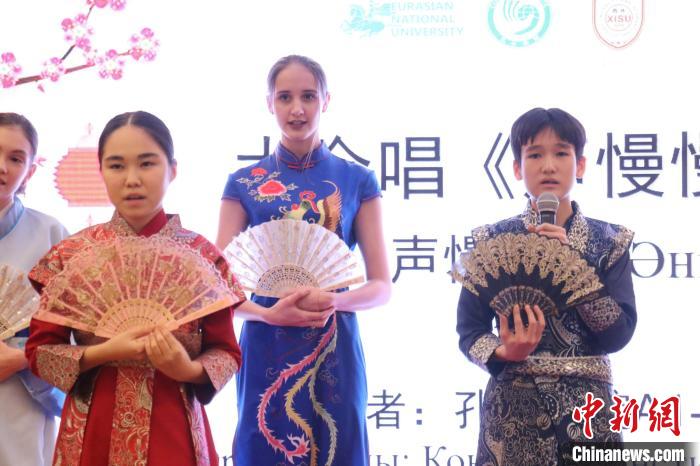 12月22日晚,哈薩克斯坦阿斯塔納,“漢語(yǔ)風(fēng)采,中哈同歡”2024年阿斯塔納中文盛典暨元旦聯(lián)歡慶祝活動(dòng)舉行。圖為身著中國(guó)傳統(tǒng)服飾的哈學(xué)生為觀眾帶來(lái)精彩表演?! ≈行戮W(wǎng)記者 張碩 攝
