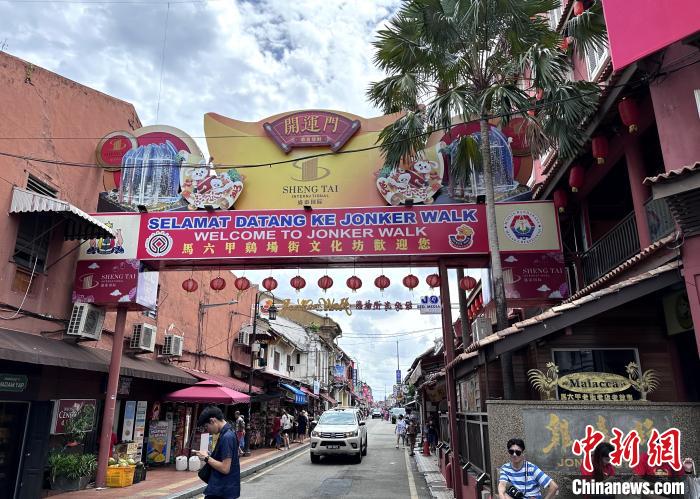 2023年6月拍攝的馬來西亞馬六甲雞場(chǎng)街入口?! ≈行律缬浾?陳悅 攝