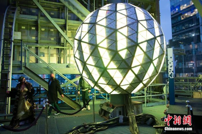 資料圖:當(dāng)?shù)貢r間2021年12月30日,美國紐約時報廣場跨年夜倒計時水晶球測試亮燈,現(xiàn)場向部分人士開放預(yù)覽。 中新社記者 廖攀 攝