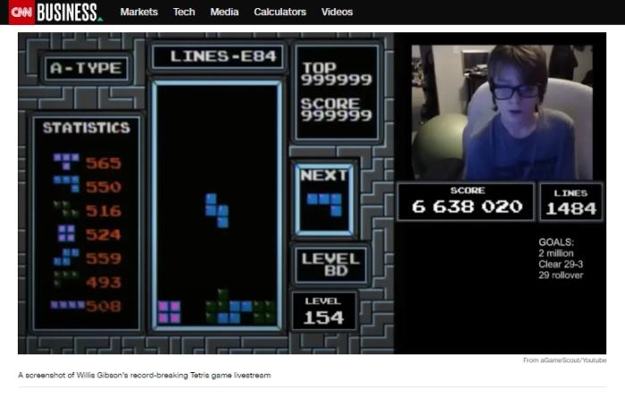 中新網(wǎng)1月4日電 綜合美媒當?shù)貢r間3日報道,來自美國俄克拉何馬州的13歲少年威利斯·吉布森打通任天堂版“俄羅斯方塊”游戲的157關(guān),被認為是這款經(jīng)典游戲發(fā)行30多年后首個通關(guān)的人。