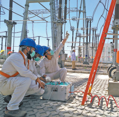 在巴基斯坦默蒂亞里—拉合爾直流輸電項目現場,中巴工程師對設備開展日常檢修。