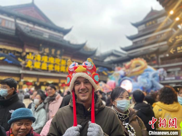 1月21日,2024豫園燈會正式亮燈,一名西班牙小伙兒在現(xiàn)場觀燈。中新網記者 鄭瑩瑩 攝