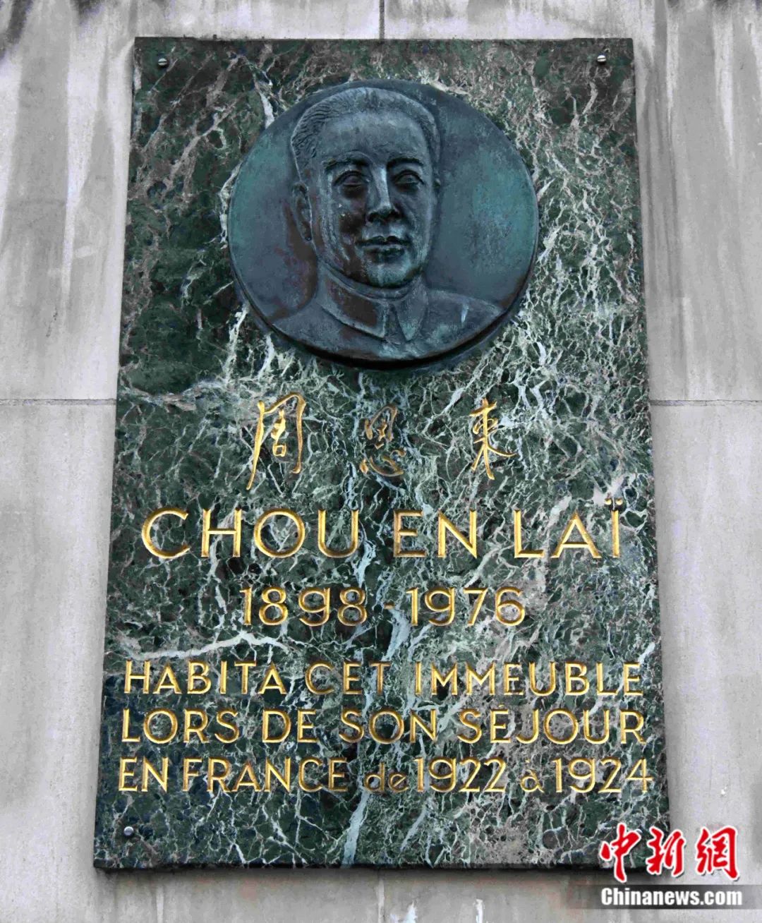 在巴黎設(shè)立的周恩來(lái)總理紀(jì)念牌。李洋 攝