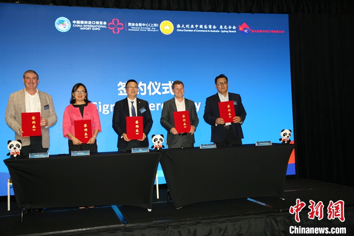 當(dāng)?shù)貢r間1月30日,第七屆中國國際進(jìn)口博覽會推介會在澳大利亞悉尼舉行。部分澳大利亞企業(yè)確認(rèn)參加第七屆進(jìn)博會并簽訂協(xié)議?!?中新社記者 顧時宏 攝