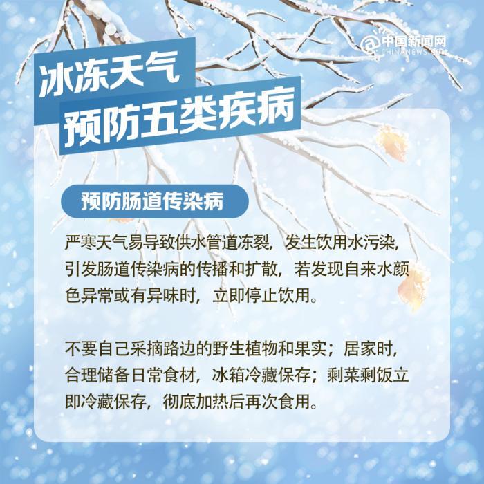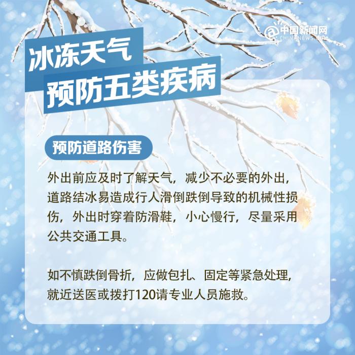 中新網(wǎng)北京2月7日電 近期我國(guó)中東部地區(qū)出現(xiàn)大范圍持續(xù)性低溫雨雪冰凍天氣過(guò)程,局部地區(qū)累計(jì)降雪量將接近或超過(guò)歷史同期,雨雪覆蓋范圍廣、持續(xù)時(shí)間長(zhǎng)、凍雨范圍大,雨雪冰凍災(zāi)害風(fēng)險(xiǎn)高,恰逢春節(jié)人員大規(guī)模流動(dòng),以下健康防護(hù)要點(diǎn)請(qǐng)查收。