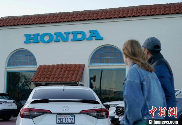 當(dāng)?shù)貢r(shí)間2月6日,行人從美國加州伯林格姆一家本田汽車銷售店附近經(jīng)過?!≈行律缬浾?劉關(guān)關(guān) 攝