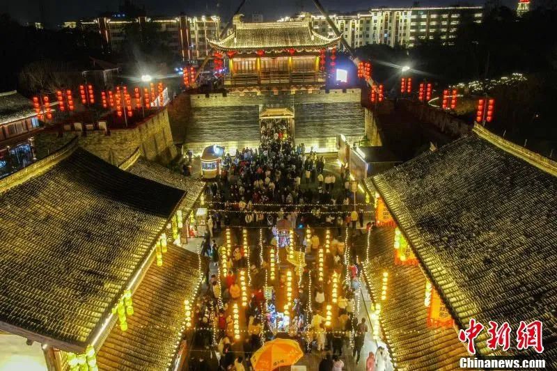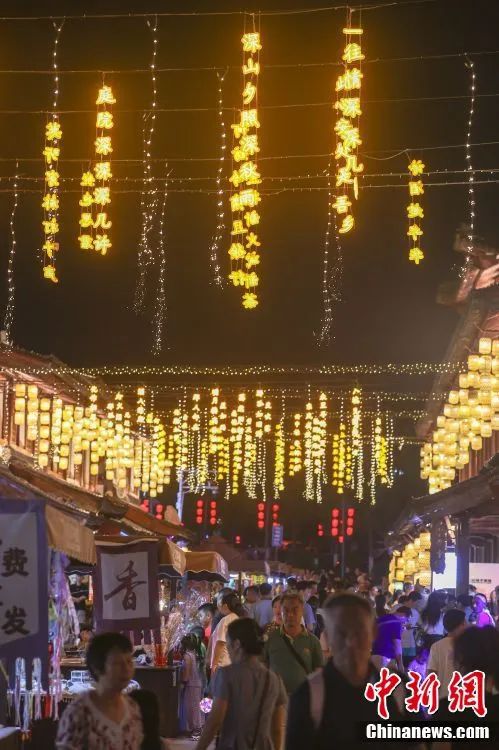 圖為夜幕降臨時,民眾們在江南宋城歷史文化街區(qū)中游玩。劉力鑫 攝
