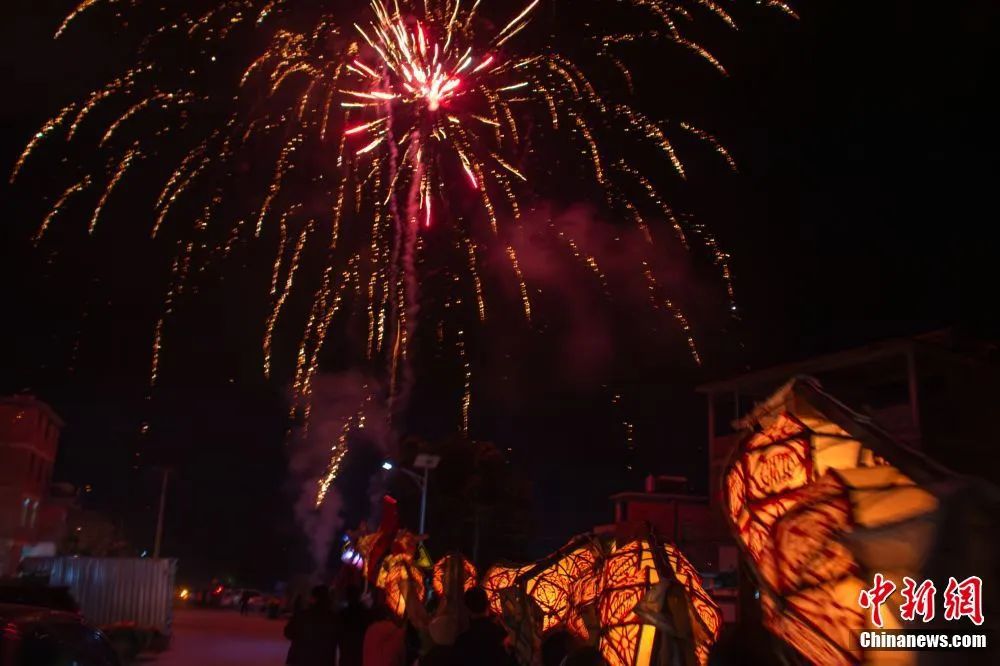 圖為江西省寧都縣石上鎮(zhèn)村民在燃放添丁炮。劉學恩 攝