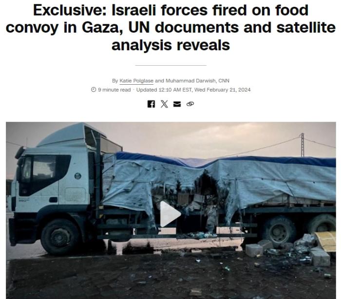 CNN:以軍曾向聯(lián)合國(guó)加沙運(yùn)糧車隊(duì)開(kāi)火 大量物資被毀