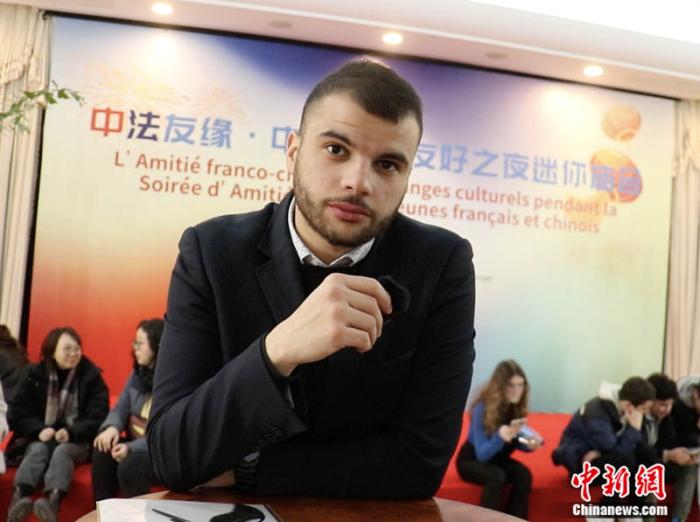 法國人民援助會(huì)全國委員會(huì)委員、本次青年代表團(tuán)團(tuán)長朱利安·維蘭(Julien Villain)接受中新網(wǎng)記者采訪。中新網(wǎng)黃方 攝