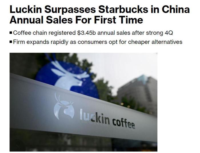 據(jù)彭博社報道,2023年全年,瑞幸的總銷售額達到約248億元(約合34.5億美元),超過星巴克在中國的可比年銷售額31.6億美元,成為中國市場最大咖啡連鎖品牌。